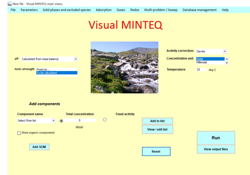 Since Visual MINTEQ interacts with Excel for data import and export, you will need Microsoft Excel 2016 or higher to use these options. Alternatively, there is support for using Visual MINTEQ together with WPS Spreadsheets (this can be changed in the default settings of the program).
